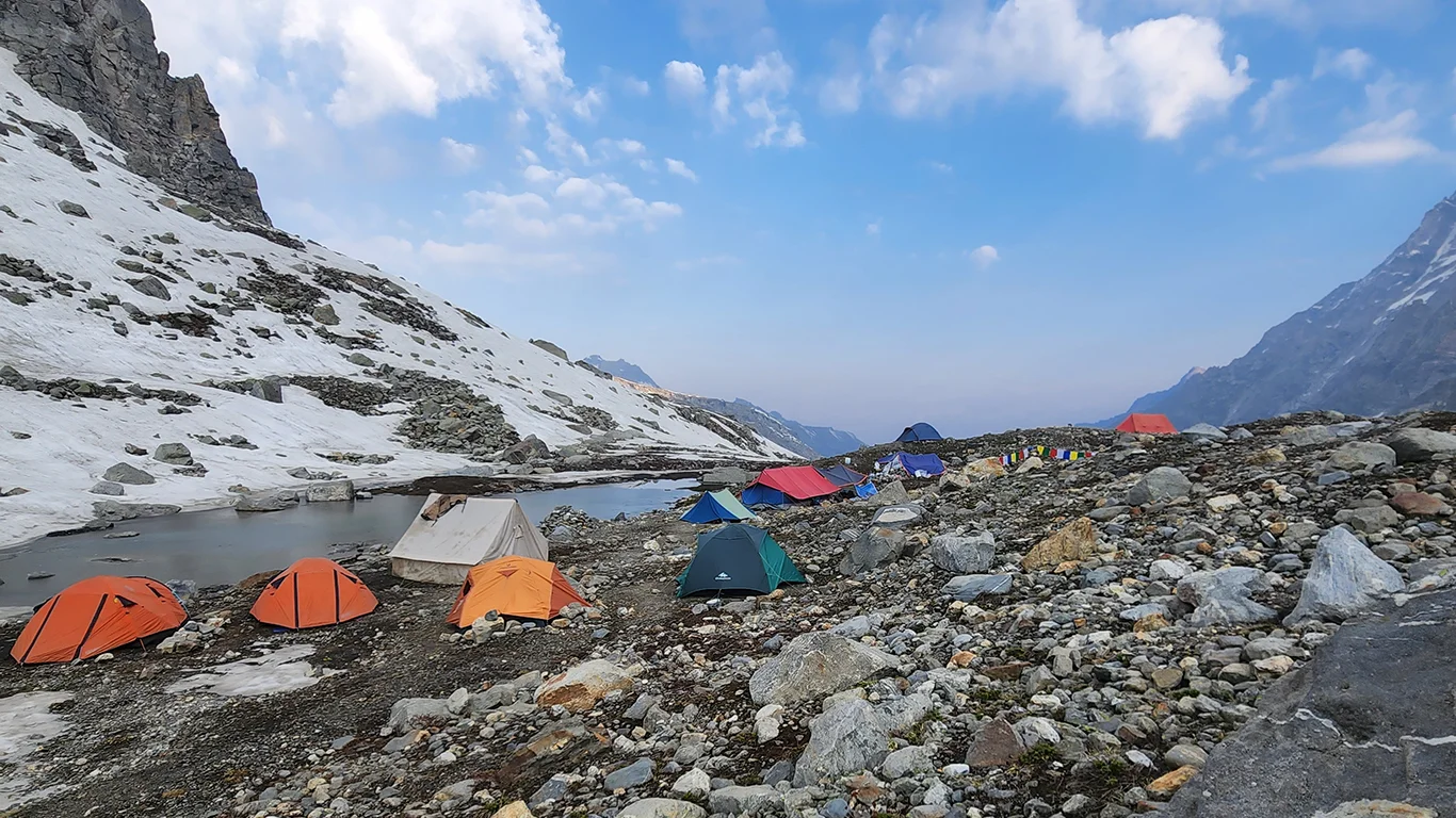 After early breakfast, start the trek towards Bhrigu Lake, the trek starts gradually, and gets steep as you climb over the mountain ridge, with an amazing view looking over the Manali valley. Lunch packed, arrive at Bhrigu Lake, take a walk around the lake, enjoy the panoramic view of the Himalayas, looking over Manali & Hamta Valley later return to base camp. Dinner and overnight at the camp.